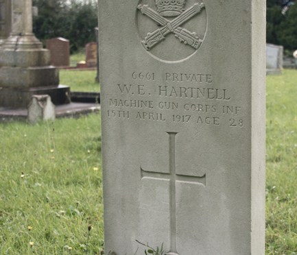 Details of Private Hartnell’s death are sketchy; his company saw action at Ypres and Arras. However, records suggest that he died in Colchester; the Military Hospital there was used to dealing with troops straight from the Front. It is likely that he was injured at Ypres and shipped back home to recuperate, but died of his injuries.