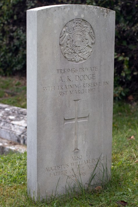 I was intrigued that Augustus Kenneth’s gravestone also commemorates his father – Augustus William Dodge – and so I did a bit more research. I found that the 1910s were not a good time for the Dodge family.