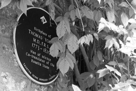 One of Milverton’s notable residents was Thomas Young (1773–1829). He is a man who had fingers in many pies, counting a scientific understanding of vision, light, solid mechanics, energy, physiology amongst his specialisms. He is probable more notable for his interest in Egyptology, and helped translate the Rosetta Stone.