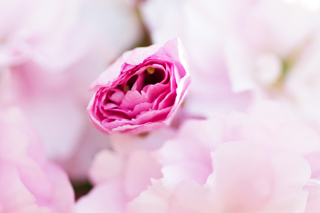 Yes, there it was, a tiny blossom, subtly pink, tiny yellow stamen that reflected the weak sun’s light.