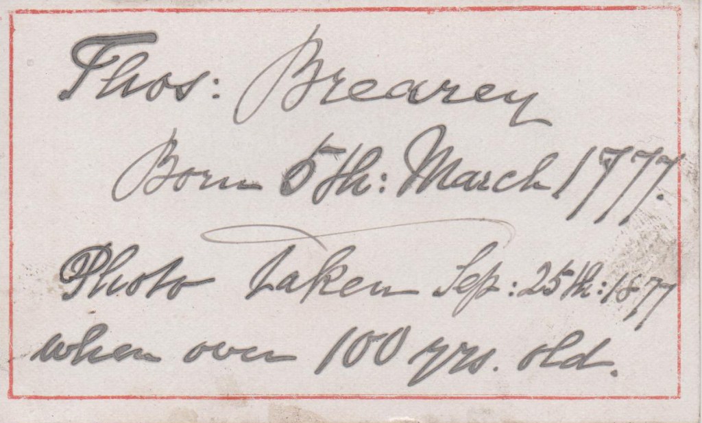 Thomas Brearey was born on 5th March 1777 in Hanging Heaton near Dewsbury, West Yorkshire. He worked in cotton mills as a slubber, and lived to a ripe old age.