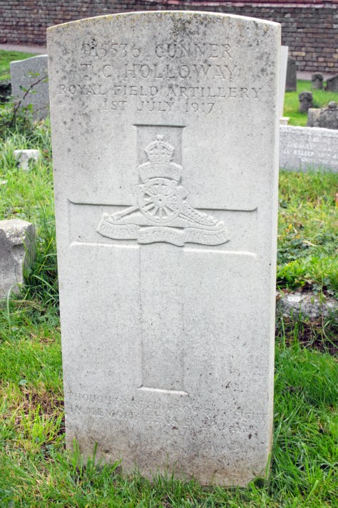 Gunner Thomas Holloway lies at rest in St Margaret’s Churchyard, in his home town of Rainham in Kent.